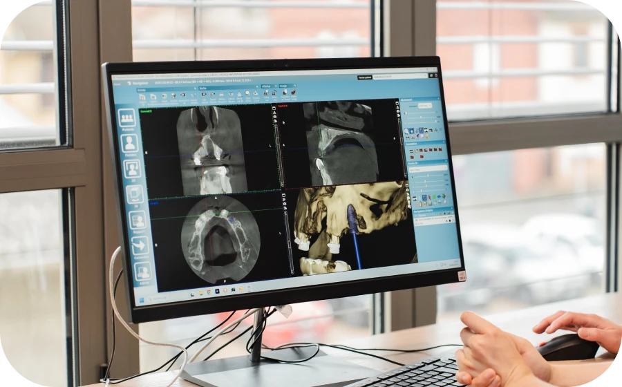 La première étape repose sur un examen clinique et radiographique complet. Le chirurgien-dentiste analyse les structures osseuses à l’aide d’un scanner 3D et d’une radiographie panoramique. Ces données permettent de planifier l’intervention avec précision.
