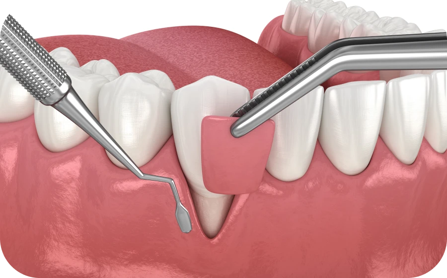 Quand les poches parodontales restent profondes malgré un traitement non chirurgical, le chirurgien doit accéder aux zones difficiles à nettoyer. Il soulève alors délicatement la gencive afin d’exposer les racines et l’os sous-jacent. Cette intervention permet d’éliminer la plaque et le tartre incrustés en profondeur, de réduire l’inflammation et de repositionner la gencive dans une situation plus favorable. Elle facilite ainsi l’hygiène quotidienne et contribue à stabiliser la maladie.