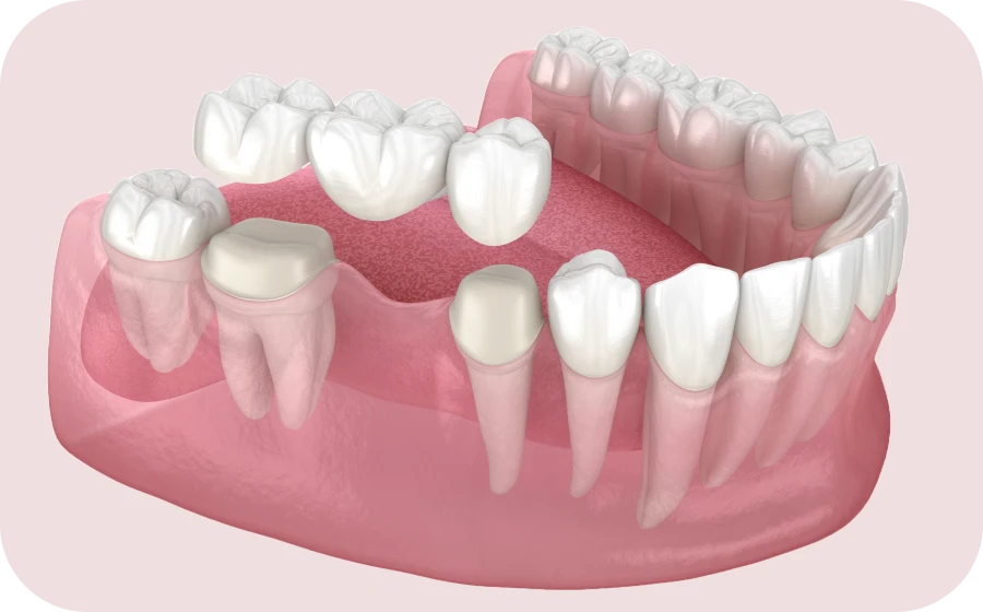 Le bridge plurale repose sur deux ou plusieurs dents naturelles. Le dentiste les prépare pour soutenir une structure solidaire composée de plusieurs couronnes. Cette technique permet de remplacer un groupe de dents manquantes sans recourir à des implants.